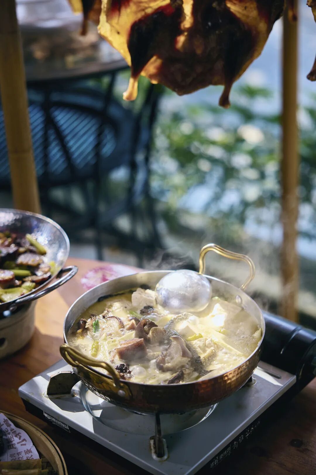 但是一到桂林,穿行在漓江山水之间,才意识到自己真是太以偏概全了。桂林市中心即在著名的两江四湖景色之中,在市区乘船游江,可以直达著名的象鼻山,还能在榕湖和杉湖的苏式园林间眺望白崇禧和李宗仁曾经的府邸。带我们了解桂林饮食的刘智伟,父母是广西师范大学的老师,学校其中一个校区位于伏波山和桂湖景区之间的靖江王府里,他从小就在市中心的核心地带生活。刘智伟告诉我,桂林人对吃远比外界想象中更讲究。就比如他的家族里,他妈妈的姨母曾经在白崇禧的府上做过奶妈,见识过当年桂系军阀最精致的官府菜,这位外祖姨母终生未婚,解放后跟着他们一起生活,把对吃的认真态度传承到了几代人之后。“老桂林的经典菜一定不是酸辣,而是黄焖鸡和豆瓣鲤鱼。”刘智伟告诉我,豆瓣酱是自己发酵的,鲤鱼不能去鳞,要现杀现炸才好,鱼鳞是酥脆的,鱼肉还很鲜甜。黄焖鸡和现在湖南菜的流行做法也不一样,一定要用香菇粉来提鲜,里面还要加干笋,“整个的风味都是特别香、充满自然味道的”。