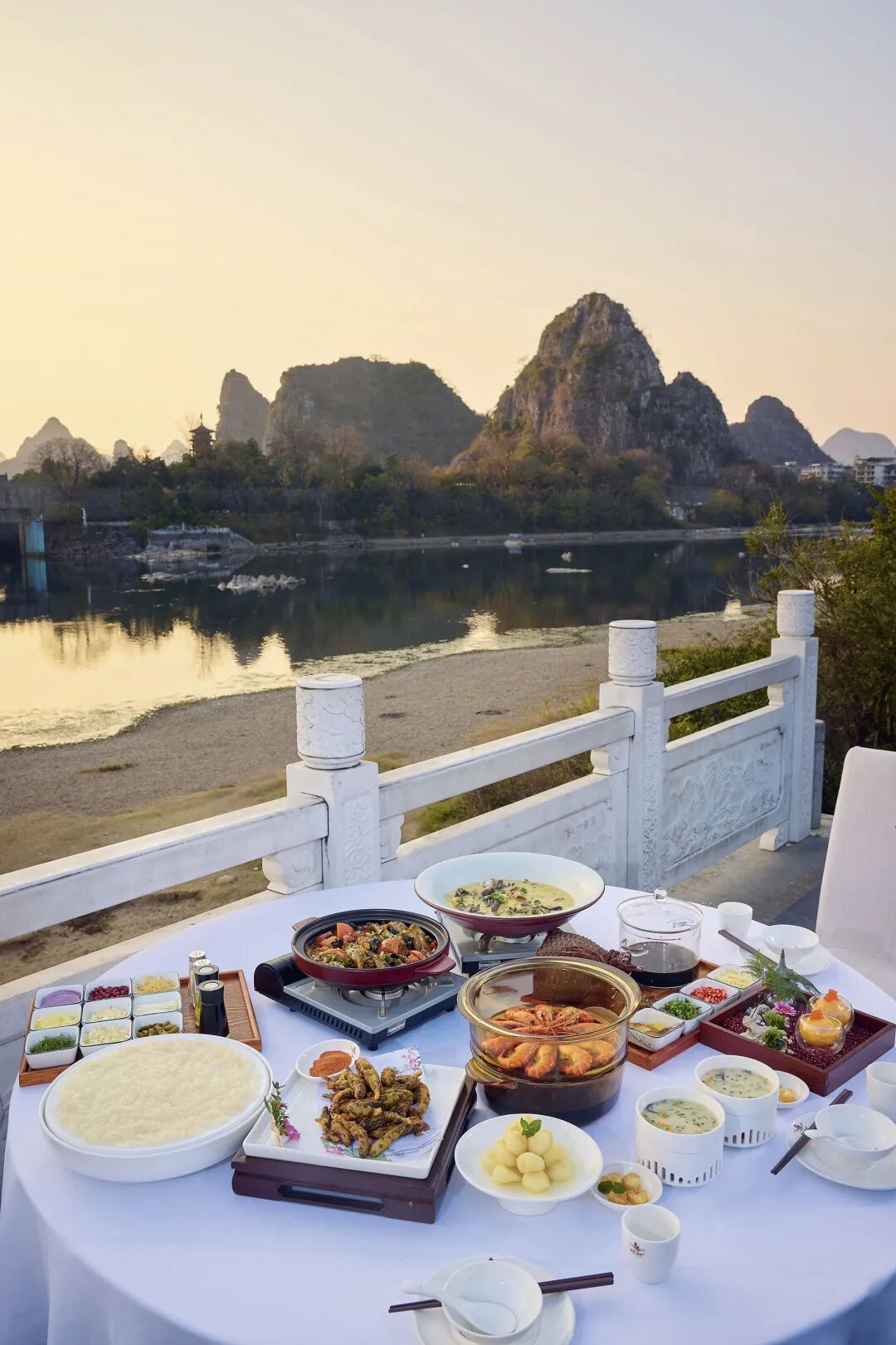 “境界渔村”餐厅临着漓江,以吃江鲜为特色