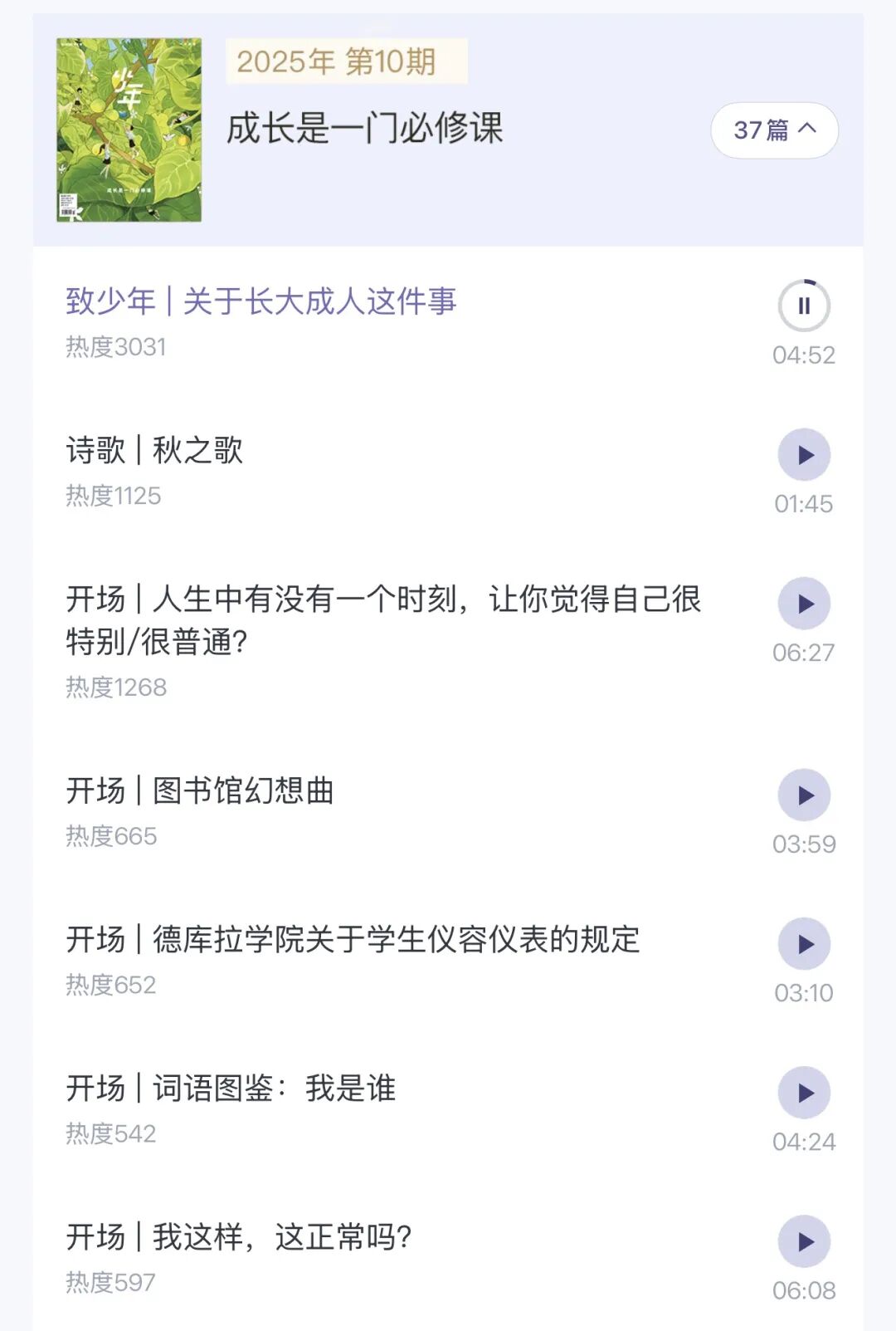 有一期专门讨论关于长大成人这件事,我闺女听完,破天荒地跟我聊了半个多小时,聊她对未来的迷茫和期待。那些我们大人想聊又不知道怎么开口的话题,一本杂志帮我们打开了话匣子。