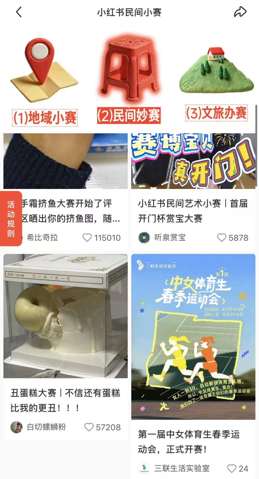除了第一届中女体育生春季运动会,小红书民间艺术小赛还有好多抽象中带着搞笑、无厘头中带着温暖的赛事们。