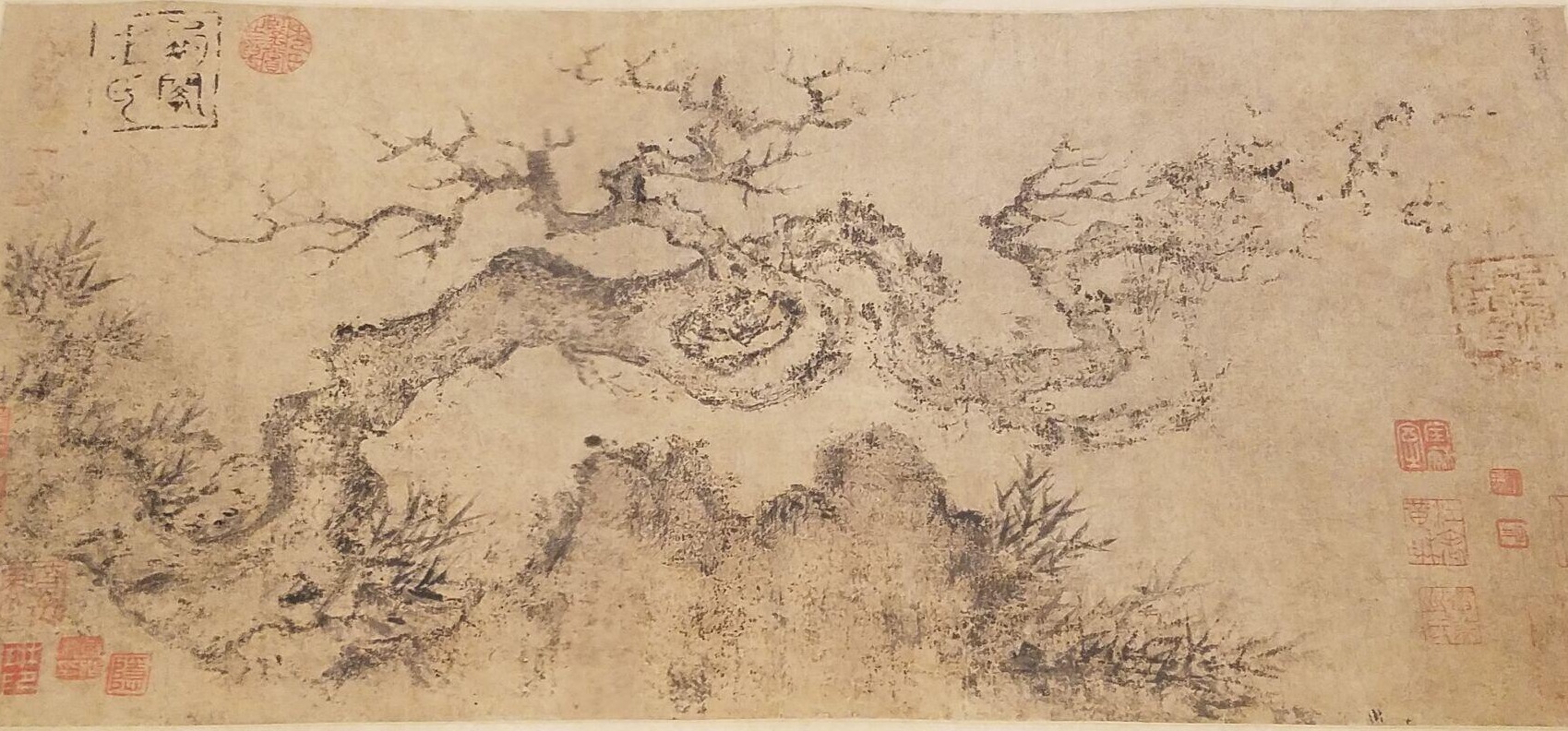 (《六君子图》之苏轼(传)枯木竹石图 纸本墨笔 纵23.4cm 横51cm 上海博物馆藏)