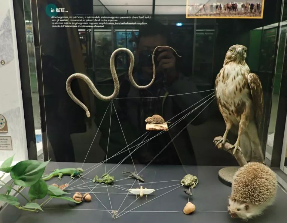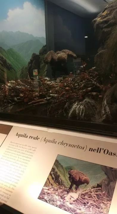 米兰自然博物馆对域外环境和物种着墨不少,而在表现意大利本土环境和生物多样性的时候则更是全力以赴。二三楼的21-23号,整整三个展厅都用来表现意大利境内的典型生境和生物。漫步其间,很难不被展示中体现出来的精湛工艺,对自身家底的了解和热爱所触动。他们甚至直接根据一张照片,几乎360°地复原了一个金雕育雏的场景!