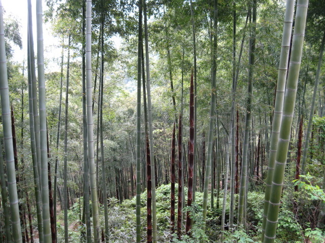 雨后的毛竹笋是节节的高,这一人多高、还包着笋衣的毛竹,都是前几天才刚拱出地面的小竹笋呢。好感佩它的生长力噢!