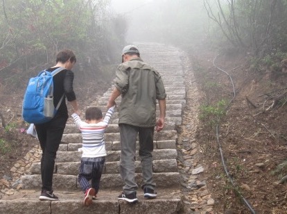 在我后面的同行者上来了,还有那个小家伙,已经从他爷爷背上下来,在自己登台阶。