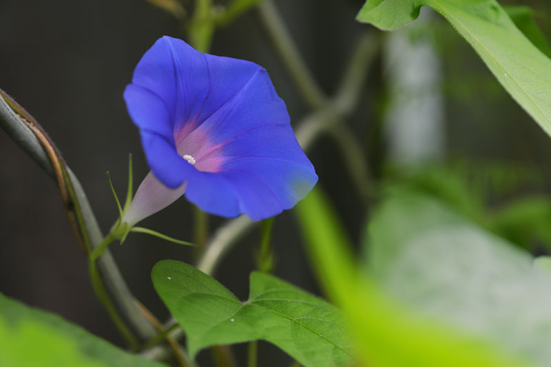 我自己栽种的牵牛花,其实想看到它的花从蓝色变成紫红色,是需要特定的条件的。如果赶上阴天,花已经开了,但白天一直没有什么阳光照射下来,花冠就不会很快缩起来,它的颜色就会渐渐变成紫红色。当然,如今还有牵牛的一个近亲物种,叫变色牵牛,在我国东南沿海地区能见到野生,在其他一些地区也有人栽种,它的花就更容易观察到变色现象,由蓝色变成紫红色。