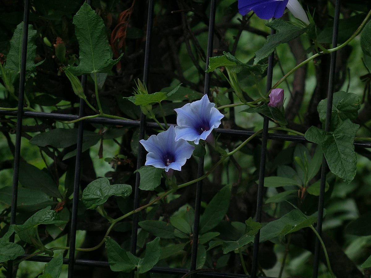 另外也有一类日系的牵牛,被统称为“变化朝颜”,它们的花冠往往不是规规矩矩的喇叭形,而且它们的花色更容易变化。比如有一类叫“桔梗咲”,桔梗就是韩式餐馆里当泡菜的那个桔梗。它的花稍微小一点,虽然也是喇叭,但喇叭口是五角星的形状,而且喇叭张开的幅度不太大。桔梗咲这一类园艺品种,大多数都会从蓝色系渐渐变成紫红色系,有的品种是从天蓝色变成浅粉色,有的品种是从深蓝色,变成深紫红色。这时候,我就回想起了宋朝的牵牛花爱好者杨万里,他要观察多少次,才能看见古时的牵牛花这个物种,花从蓝色变成紫红色呢?根据我的观察,反正有点难度。他要是栽种“变化朝颜”、栽种“桔梗咲”就好了——太阳出来,花也不会萎蔫,就一直开着,开到变色,多省心啊。
