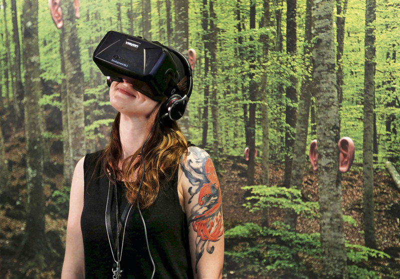 ( 2015年6月19日,西班牙声纳音乐节期间,一名女子戴着头戴式显示器看电影 )