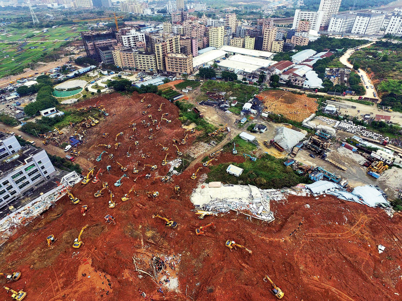 ( 2015年12月22日,深圳光明新区红坳村恒泰裕工业园渣土山塌方事故第三日救援现场航拍图