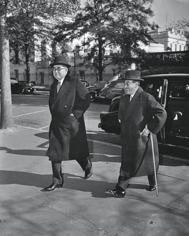 1941年11月,日本驻美国大使野村吉三郎(左)和来自东京的特使来栖三郎(右)一同前往美国国务院与美国政府官员会谈