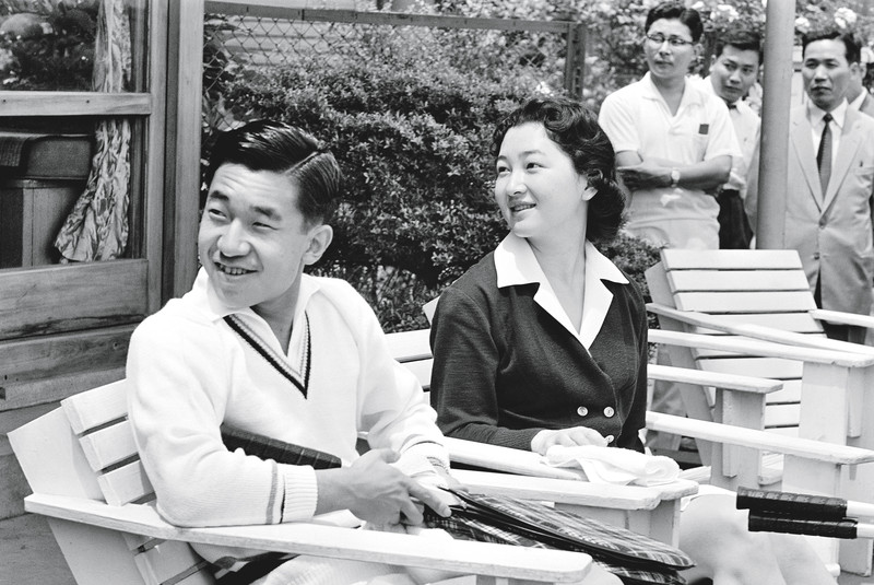 ( 1959年6月1日,皇太子明仁与太子妃美智子在婚后第一次来到东京草地网球俱乐部 )