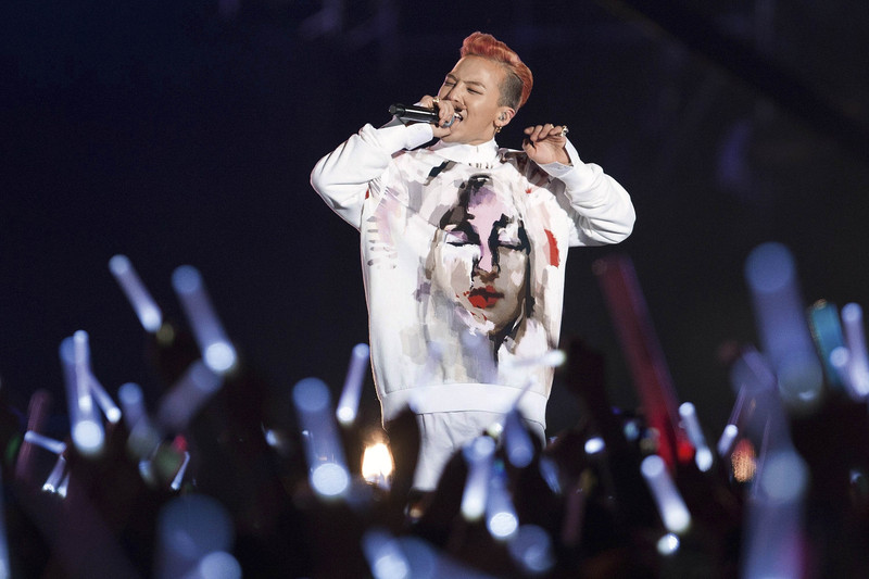 2013年4月13日,Bigbang在“鸟叔”朴载相于首尔世界杯体育场举行的“Happening”演唱会上表演,图为队长权志龙