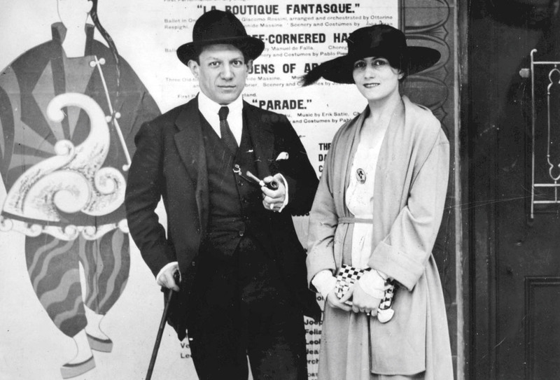 毕加索与他的第一任妻子奥尔嘉(摄于1919年)
