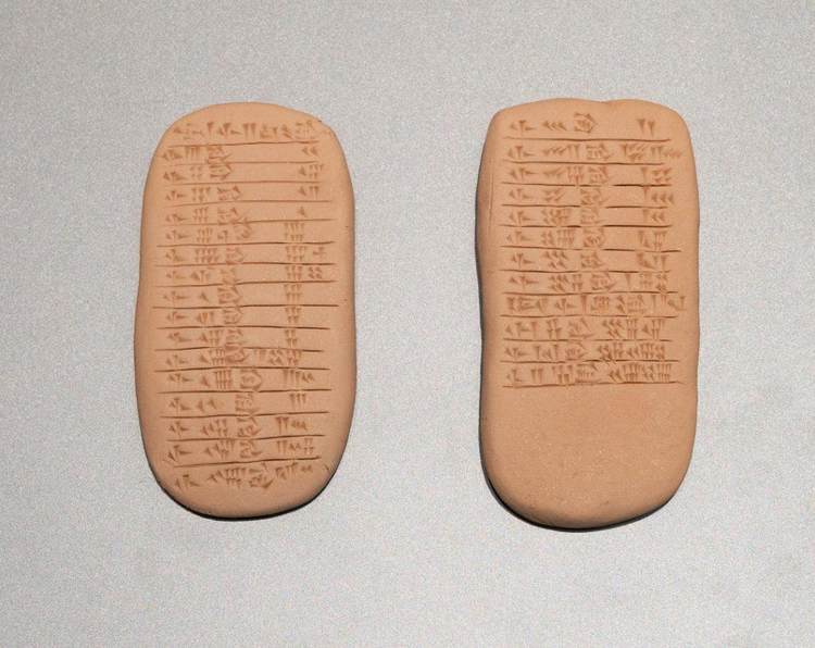 古代巴比伦文明的主要计数和算术工具是用粘土制成、上面写有楔形文字数字的泥板。有大约400块数学泥板传世,内容有整数和分数的四则运算、解二次方程等,数字采用60进制。