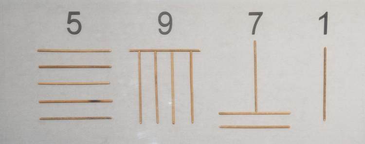 下面,我们来看看算筹。算筹是中国古代的主要计算工具,一般由木棍、竹条或兽骨做成。通过排列和摆放算筹可以施行加、减、乘、除、开方等运算,也可用来求解方程,这样的计算方式统称为“筹算”。到明中叶时,算筹基本被算盘取代。