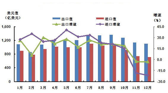 对于三大出口导向型地区出口额的骤减,如果放在地区内贸易流动的视角,或许只有一个数字能够与之匹配:1月份,我国大陆进出口总值为1418亿美元,比去年同期下降29%,但这1418亿美元的贸易额中却出现了391亿元的顺差,这一个月进口额只有513.4亿美元,下降了43.1%,是15年来的最大跌幅。韩国和我国台湾地区与大陆的贸易,一直以来都是单向流动为主,有明显的加工贸易特色。产业链上,韩国和台湾地区将机电产品出口到劳动力相对便宜的大陆,再拼装成整机出口欧美国家。商务部台港澳司发布的统计就显示,2008年两岸贸易额达1292.2亿美元,而大陆逆差为774.6亿美元。