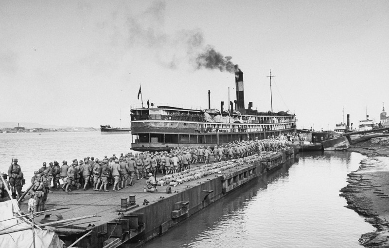 ( 1949年2月,国民党军队乘船从长江北岸南撤 )