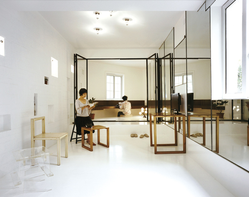 KUU建筑设计上海事务所是在淮海路上的一幢老房子里,本来巷子就很窄,墙边的竹脚手架让人不得不俯首穿行。现在,这种搭在老房子外墙的竹脚手架在上海市区几乎随处可见。进门之后,出现了一个更加家常的生活场景。他们的办公室和邻居住家只有一墙之隔,一道低矮的灰泥隔墙后面,邻居晾晒在细竹竿上的衣服在那里飘荡,横向、斜向延伸的细竹竿和粗壮的脚手架毛竹杂乱地交错在一起。