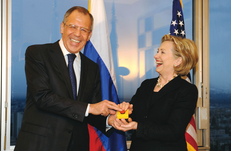 ( 3月6日,美国国务卿希拉里·克林顿(右)与俄罗斯外长拉夫罗夫在出席日内瓦双边会谈