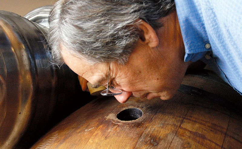 ( 美国俄勒冈州德舒特啤酒厂内,酿酒专家拉里·西得正在检查啤酒发酵情况 )