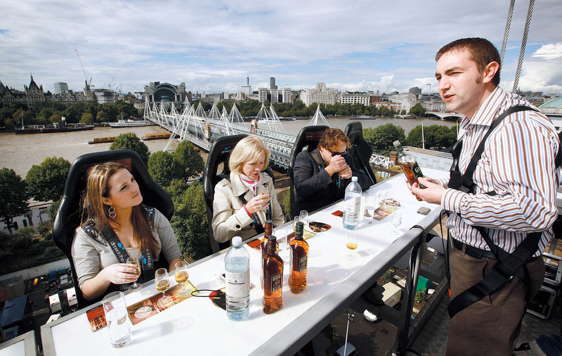 ( 2010年9月9日,格兰威士忌公司在伦敦南岸地区举行了一场高空品酒活动,客人悬在离地40米的高空上品尝威士忌酒 )