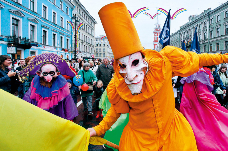 5月27日是圣彼得堡的城市节,市民在冬宫广场沿涅瓦大街举行化装游行。 )
