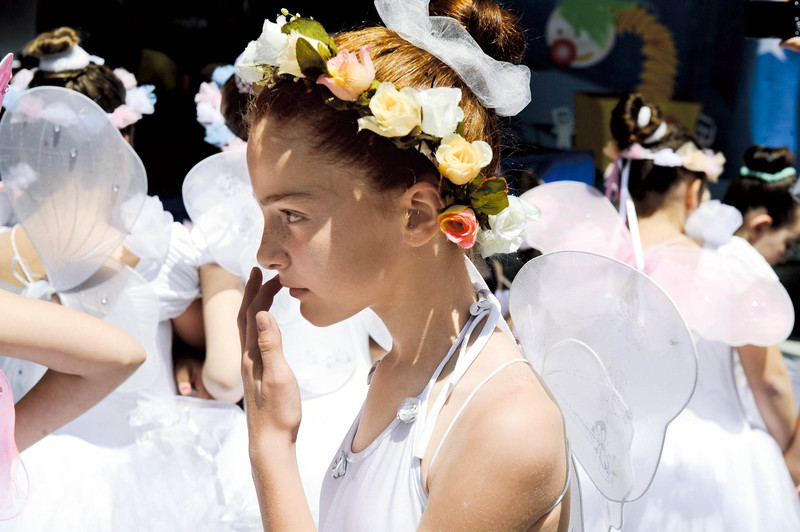 6月1日,在塞尔维亚的普里什蒂纳,孩子们穿着芭蕾舞裙参加儿童节庆祝活动。 )