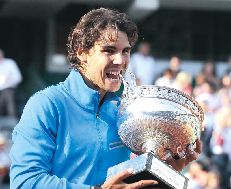 5月22日至6月5日,法国网球公开赛在巴黎举行。中国选手李娜战胜意大利名将斯齐亚沃尼夺得女单冠军。男单决赛中,西班牙天王纳达尔(左)击败瑞士天王费德勒第6次捧起火枪手杯。 )