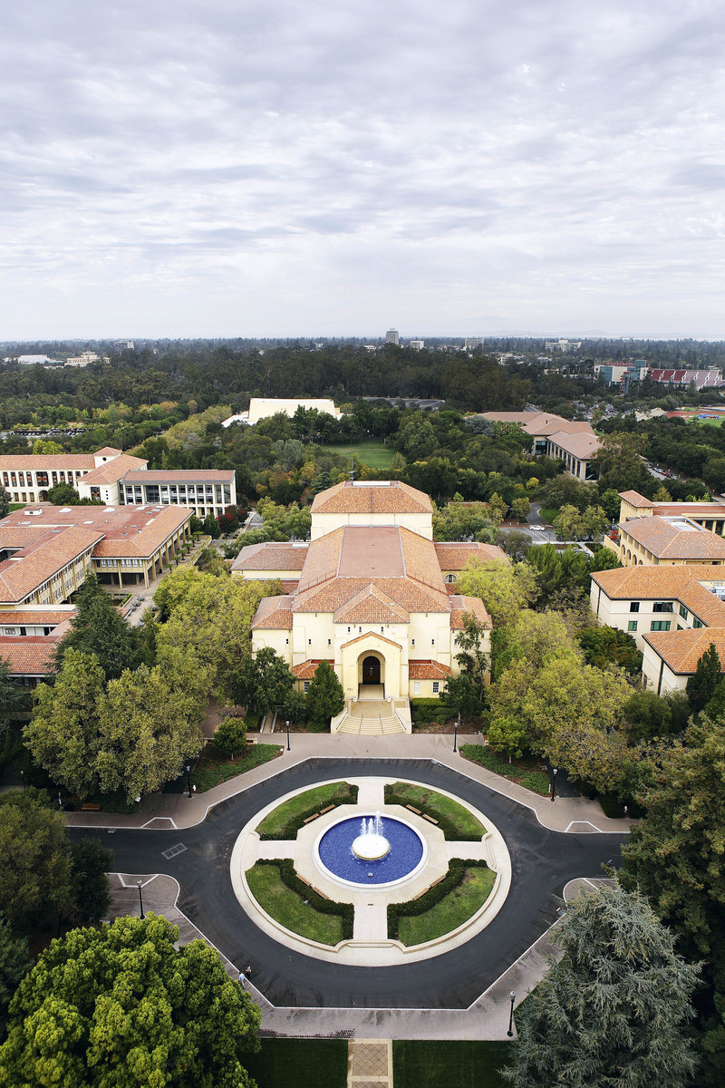 ( 斯坦福大学俯视图,校园最初的设计者中包括著名建筑师弗雷德里克·劳·奥姆斯特德(纽约中央公园的设计师)