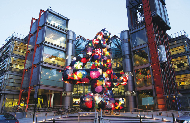 3月4日,英国伦敦,废旧雨伞打造的英国第四频道电视台新标识。艺术家斯蒂芬妮·安博用被抛弃的废旧雨伞为第四频道打造了一个巨大的阿拉伯数字“4”标识,既体现了创意又起到了环保的效果。■