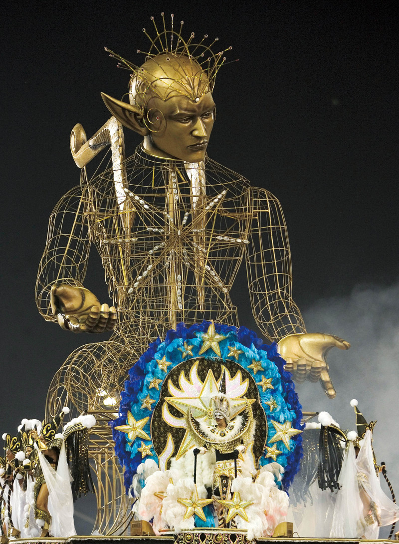 狂欢者参加桑巴舞学校的大游行,这是狂欢节庆祝的一部分。今年的巴西狂欢节将在2月22日和23日举行。■ )