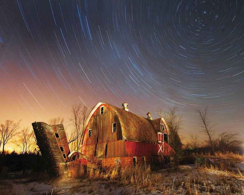 2月15日,美国威斯康星州,河边一个废弃的谷仓,一个45分钟长的曝光所制造的神奇夜空星光圈。这个谷仓是用电池光源的聚光灯照射的,使用目前流行的光学涂鸦制造出了如此神奇美妙的画面。■ )
