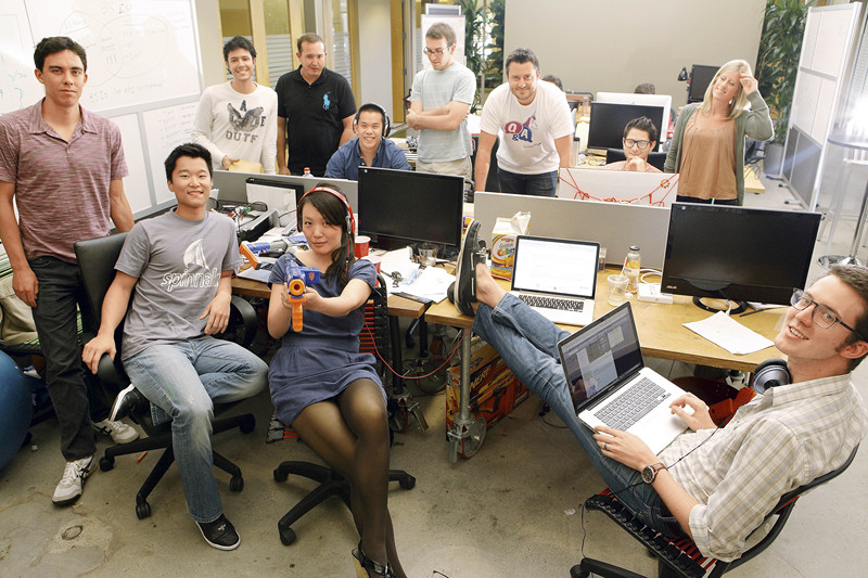 ( 在大学路附近的一家创业公司孵化器内,一个年轻的团队正在创业中