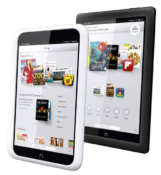 针对亚马逊Kindle Fire HD的高清屏幕,巴诺书店也开发了自己的Nook HD+平板。9英寸屏幕采用了1920×1280的IPS屏幕,264ppi像素密度跟iPad达到了同一水平,略高于Kindle Fire HD的254ppi。尽管为了追求515克的更轻巧便携重量,但电池容量控制在了6000毫安时。