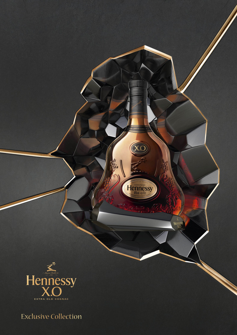 轩尼诗以“愈欣赏,愈懂欣赏”的品牌精神,从2007年起推出珍藏版的X.O白玉霓葡萄叶酒樽。今年的第五代珍藏版以铜金色瓶身为主体,搭配艺术家阿里克·李维设计的“岩石”底座。几何刻面构成的底座棱角分明,与圆润的瓶身之间构成一种平衡。