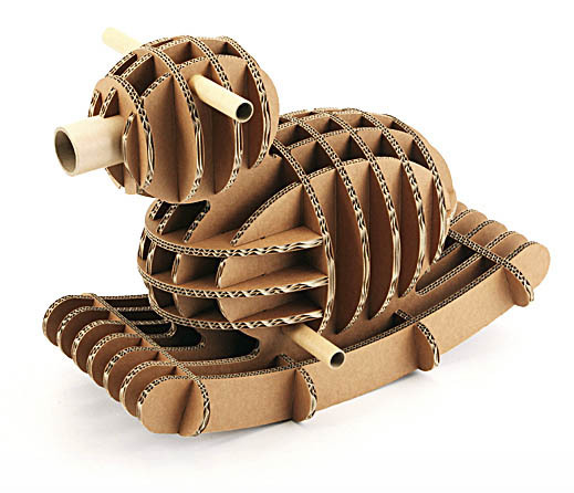 日本设计师正弘南一直迷恋瓦楞纸的应力结构,以“Peter”命名的瓦楞纸摇马,最大可以承受50公斤的重量。脚踏和手柄采用硬纸筒材料,相互交叉的瓦楞纸零件,可以由孩子自己组装。