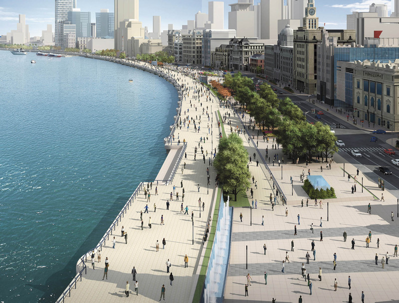 “那时候,外滩沿线马路只有4车道,车很少,防汛墙也没这么高。而现在呢?已扩充到10车道,防汛墙不断加高,人的空间被车挤占了。”伍江是上海规划局副局长,负责此次外滩改造,他说,“改造后的外滩会回到原来4车道的景象,为人提供更舒适的公共空间。”