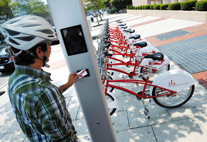 美国首都华盛顿近日实施“特区聪明自行车”计划,为该计划专门设计的停车车架已经出现在许多交叉路口。该计划采取会员制,一年会费40美元,在市内各处电脑控制的车架上刷会员卡取车。每次最多使用3小时,可以在任何一个SmartBike站还车。系统运营时间从上午6时到晚上22时,全年无休。根据规划,该系统初期只有10个站点,大部分靠近市区地铁站。■