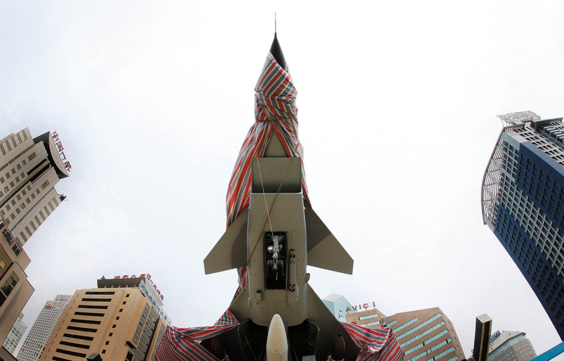 6月12日,位于北京东三环国贸桥附近的中国一航大楼前搭起了一个脚手架平台,平台上摆放着一架中国一航研制的歼-10战机。这架歼-10是完全根据真机的1∶1高仿模型,机上细节分毫毕现,现在平放的歼-10在完工后将沿着金属底座支架的角度,做出大仰角爬升的姿态。歼-10高仿模型作为一航的骄傲,将成为一航大楼前的标志性景观。■