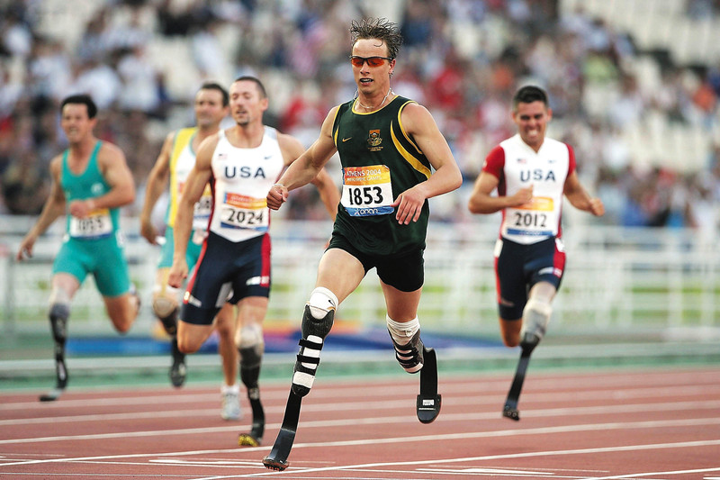 ( 2004年9月,奥斯卡·皮特鲁斯(中)参加雅典残奥会 )