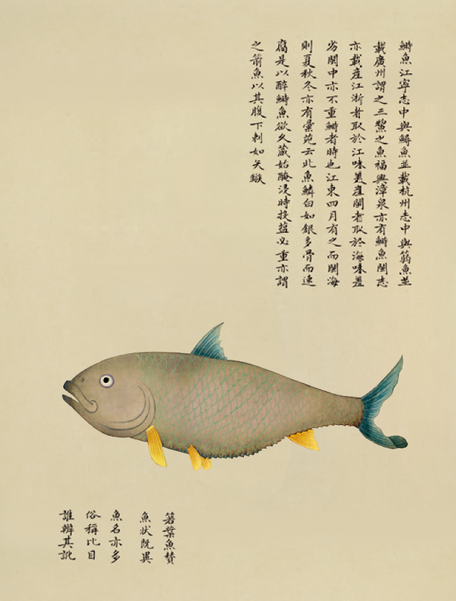今天先来说鳞部里的一种鱼——鲥鱼。说到鲥鱼,很多人都会脱口而出那句张爱玲的名言:“一恨鲥鱼多刺,二恨海棠无香,三恨红楼梦未完。”这句话非常著名,但这其实不是张爱玲的原创,她加工了古人的一句话。宋朝有位名士叫彭渊材,他说平生所恨有五件事,“第一恨鲥鱼多骨,第二恨金橘大酸,第三恨莼菜性冷,第四恨海棠无香,第五恨曾子固不能作诗。”后来张爱玲在考据《红楼梦》的著作《红楼梦魇》中说:“有人说过‘三大恨事’是一恨鲥鱼多刺,二恨海棠无香,第三件不记得了,也许因为我下意识地觉得应当是‘三恨红楼梦未完’。”