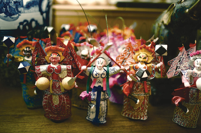 白大成的手艺是“鬃人”。这些巴掌大的精致小人偶被摆在铜盘子里,用一根小棒敲击可以产生三种效果:一、孙悟空和某妖怪朝一个方向转圈;二、孙悟空和某妖怪向不同的方向转圈,表示对打;三、孙悟空和某妖怪朝同一个方向走直线,表示追打。之所以能产生这种效果,是因为每个小人底部都粘上一圈短鬃毛。“这个玩意我玩了50年了。”白大成一点也没觉得这是个枯燥的玩具,“把最简单的东西做到最精致,才好玩。”