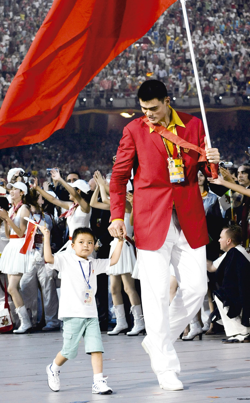 ( 中国代表团进场时,9岁的汶川少年林浩同旗手姚明走在队伍的最前列
