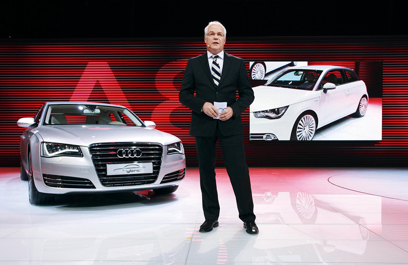( 奥迪公司技术研发董事迈克尔·迪克和全新奥迪A8 Hybrid )