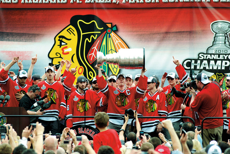 美国体坛四大职业联赛之一的北美冰球联赛6月9日落幕。芝加哥黑鹰队4∶2的总比分时隔49年捧起冠军奖杯斯坦利杯。 )