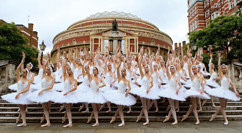 英国国家芭蕾舞团6月8日迎来60周年生日,60名舞蹈演员在伦敦皇家艾伯特大厅附近合影。 )