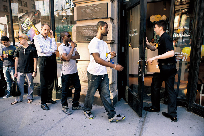 ( 6月4日,美国纽约排队购买HTC EVO 4G手机的消费者 )