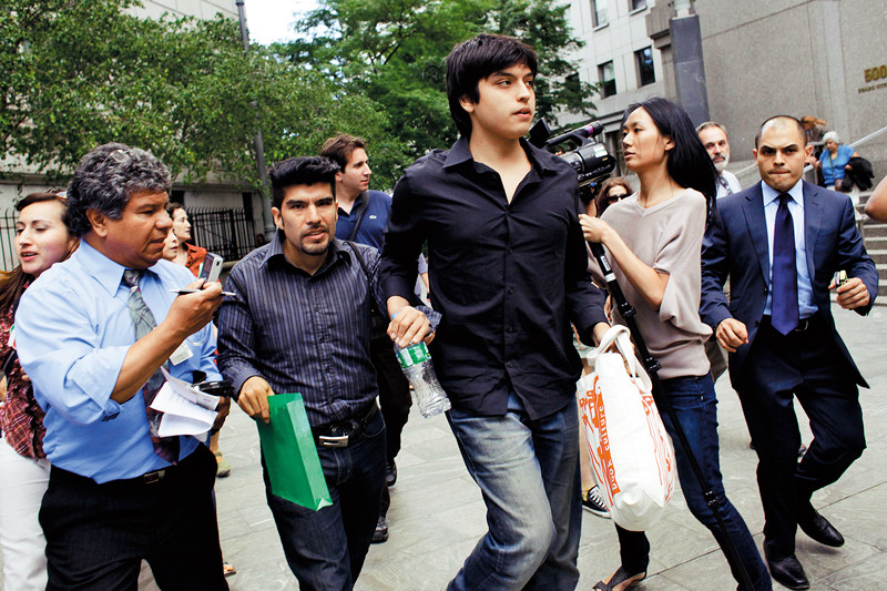 ( 7月1日,遭间谍指控的女专栏作家维基·佩雷兹的孩子在纽约街头被记者追堵 )