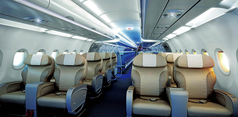 ( A320系列飞机客舱。空中客车A320系列飞机由A318、A319、A320和A321四个机型组成 )