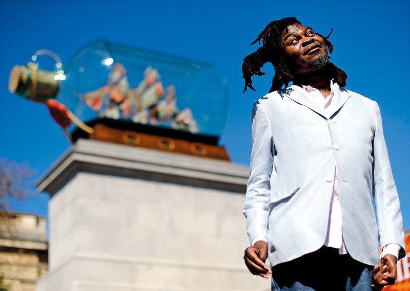 8月19日,参加2011年特拉法加广场公共艺术项目“第四基座”的6位候选艺术家揭晓了自己的候选作品。6件作品将公开展出至10月31日,公众可就此发表自己的意见,最终一个8人评审团将于明年初公布评选结果。目前基座上摆的是因卡·索尼巴尔的雕塑《瓶中的纳尔逊战舰》。 )