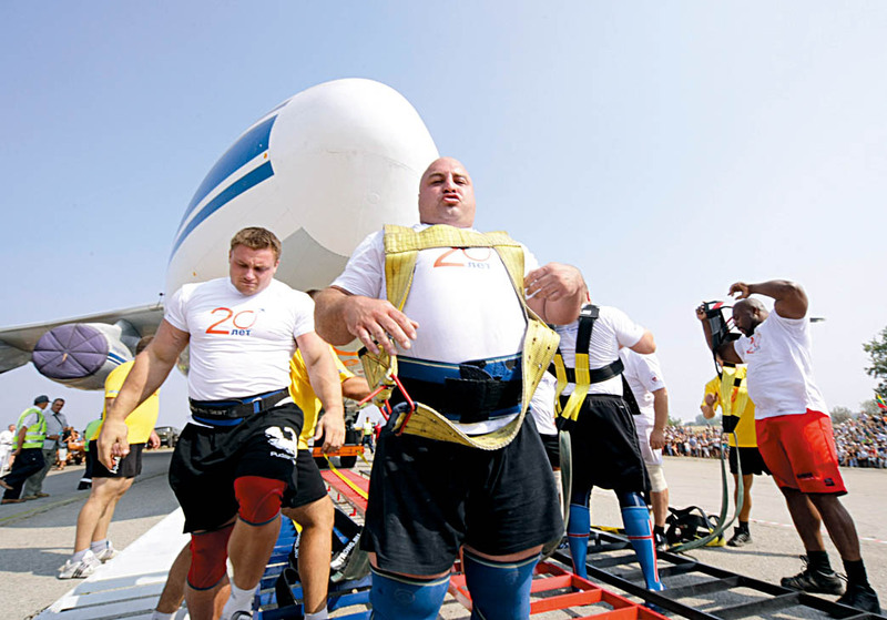 8月15日,俄罗斯乌里扬诺夫斯克,来自世界各地的运动员们庆祝他们创造了新的世界纪录。他们一起拉动了195吨重的货机,并且移动了5米多。 )
